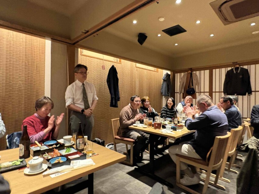 初めて見るもの、聞くものばかりでしたので、あっという間に懇親会場に行く時間になりました。「えーっ、もう、帰るんですか?」という声に後ろ髪を引かれながら競馬場を後にしました。懇親会は30名の方全員にご参加いただきました。
